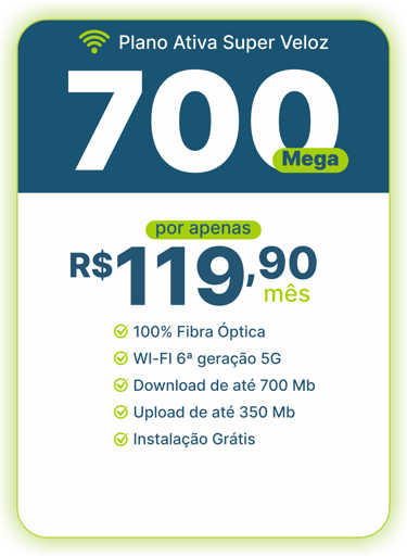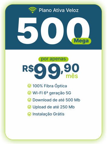 Tecnologia de ponta que oferece a máxima qualidade de internet, com velocidade e estabilidade.